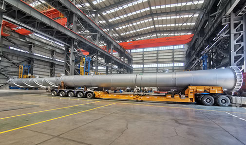 萬德化學(xué)(東營)有限公司拔頭油分離塔設(shè)備出廠運輸